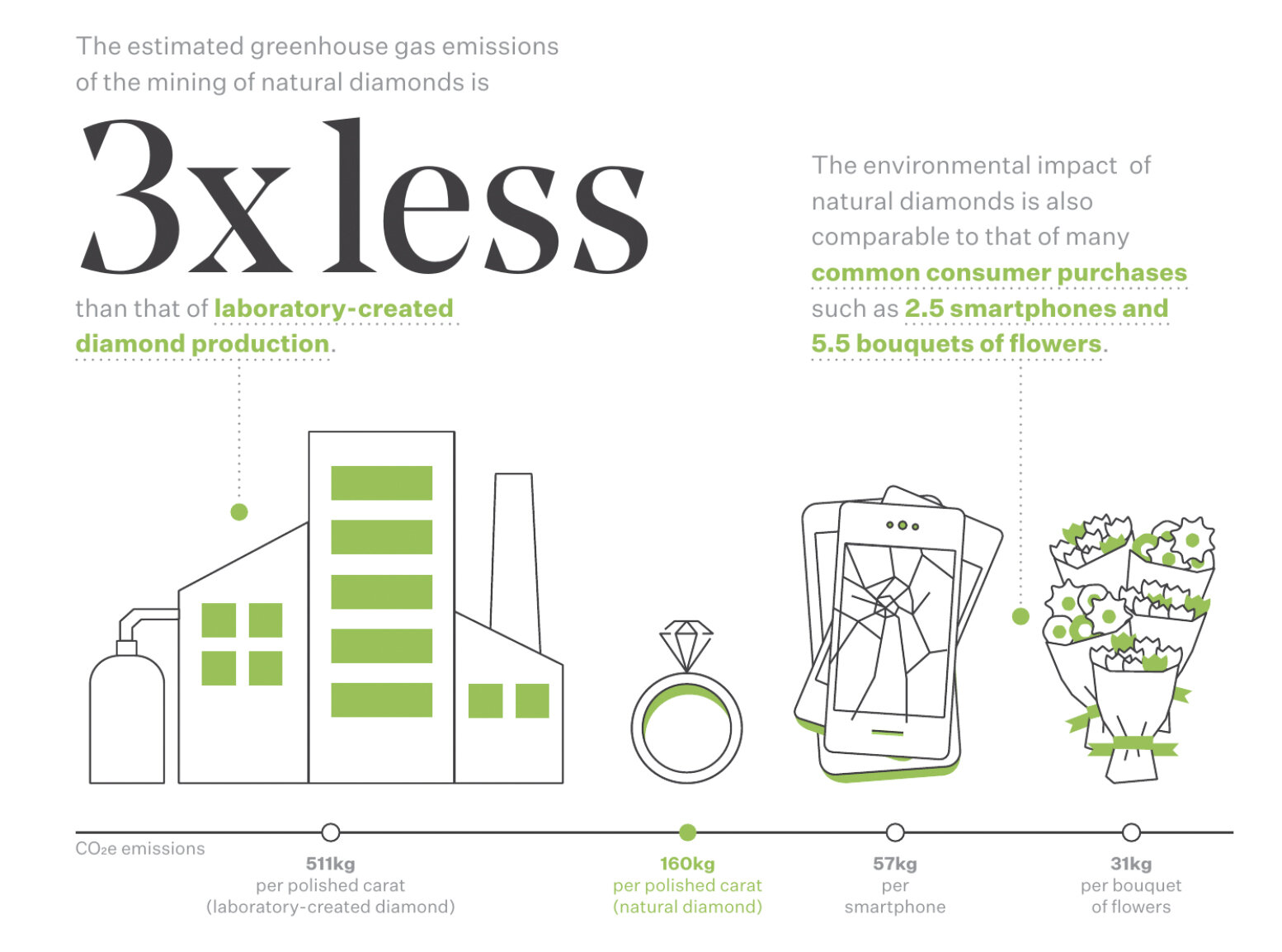 According to the Trucost report, DPA Members collectively emitted 160kg of CO2e per polished carat produced. This equivalent to the amount of CO2e generated by driving 390 miles in an average passenger vehicle.